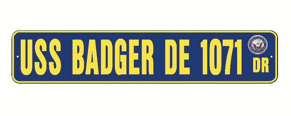 USS BADGER DE 1071 Aluminum Street Sign Navy Blue / Yellow 6" x 30" Military USN SS002