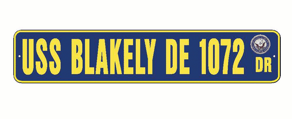 USS BLAKELY DE 1072 Aluminum Street Sign Navy Blue / Yellow 6" x 30" Military USN SS002