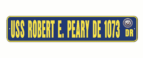 USS ROBERT E PEARY DE 1073 Aluminum Street Sign Navy Blue / Yellow 6" x 30" Military USN SS002