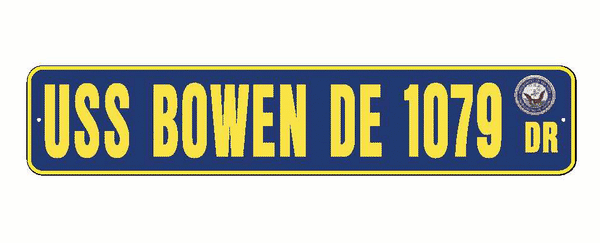 USS BOWN DE 1079 Aluminum Street Sign Navy Blue / Yellow 6" x 30" Military USN SS002