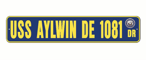 USS AYLWIN DE 1081 Aluminum Street Sign Navy Blue / Yellow 6" x 30" Military USN SS002