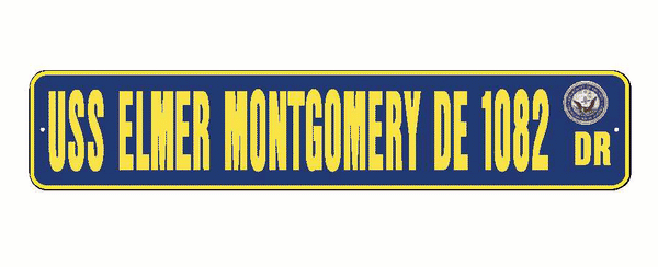 USS ELMER MONTGOMERY DE 1082 Aluminum Street Sign Navy Blue / Yellow 6" x 30" Military USN SS002