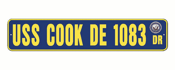 USS COOK DE 1083 Aluminum Street Sign Navy Blue / Yellow 6" x 30" Military USN SS002