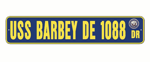 USS BARBEY DE 1088 Aluminum Street Sign Navy Blue / Yellow 6" x 30" Military USN SS002