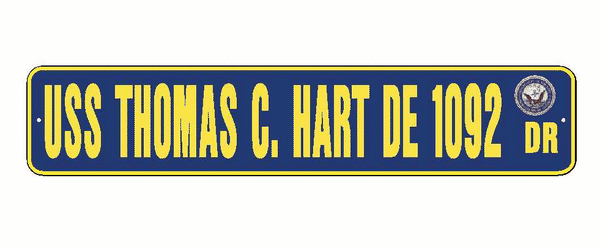 USS THOMAS C HART DE 1092 Aluminum Street Sign Navy Blue / Yellow 6" x 30" Military USN SS002