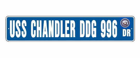 USS CHANDLER DDG 996 Aluminum Street Sign Blue / White 6" x 30" Military USN SS001