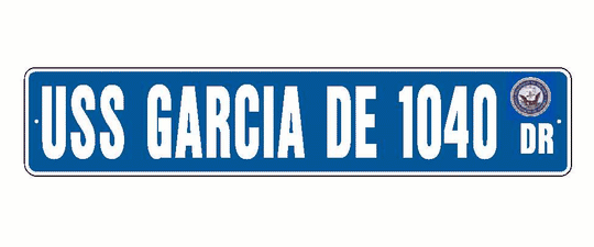 USS GARCIA DE 1040 Aluminum Street Sign Blue / White 6" x 30" Military USN SS001