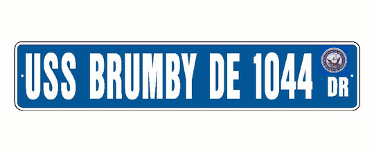 USS BRUMBY DE 1044 Aluminum Street Sign Blue / White 6" x 30" Military USN SS001