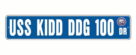 USS KIDD DDG 100 Aluminum Street Sign Blue / White 6" x 30" Military USN SS001