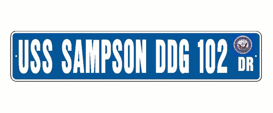 USS SAMPSON DDG 102 Aluminum Street Sign Blue / White 6" x 30" Military USN SS001