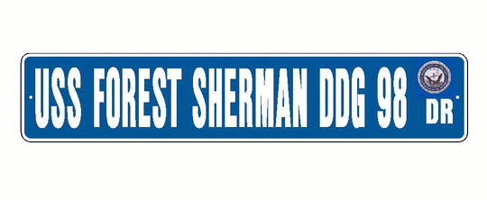USS FORREST SHERMAN DDG 98 Aluminum Street Sign Blue / White 6" x 30" Military USN SS001