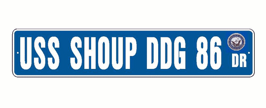 USS SHOUP DDG 86 Aluminum Street Sign Blue / White 6" x 30" Military USN SS001
