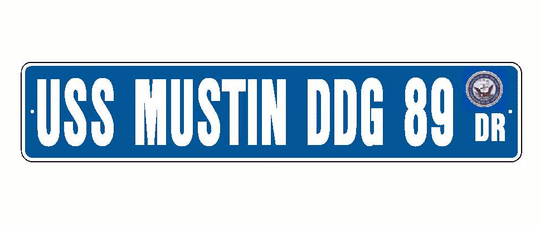 USS MUSTIN DDG 89 Aluminum Street Sign Blue / White 6" x 30" Military USN SS001