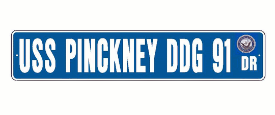 USS PINCKNEY DDG 91 Aluminum Street Sign Blue / White 6" x 30" Military USN SS001