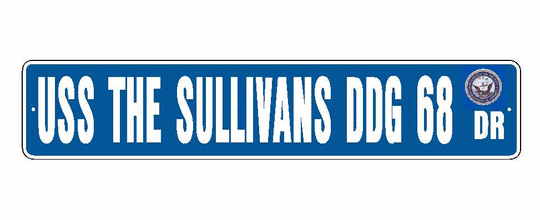 USS THE SULLIVANS DDG 68 Aluminum Street Sign Blue / White 6" x 30" Military USN SS001
