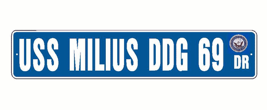 USS MILIUS DDG 69 Aluminum Street Sign Blue / White 6" x 30" Military USN SS001