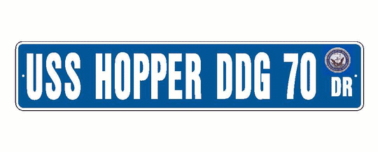 USS HOPPER DDG 70 Aluminum Street Sign Blue / White 6" x 30" Military USN SS001