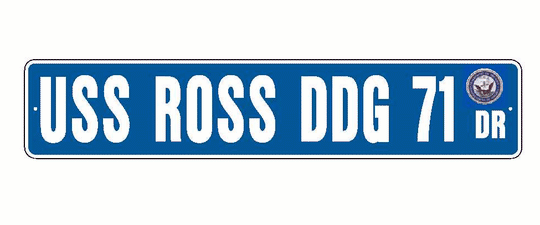 USS ROSS DDG 71 Aluminum Street Sign Blue / White 6" x 30" Military USN SS001