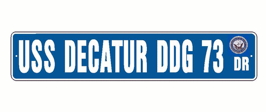 USS DECATUR DDG 73 Aluminum Street Sign Blue / White 6" x 30" Military USN SS001