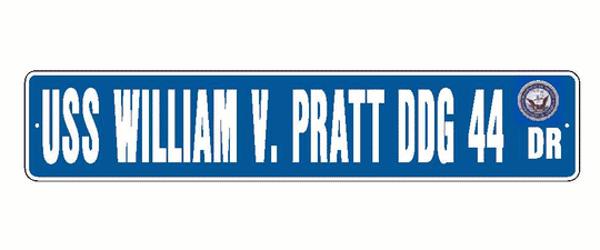 USS WILLIAM V PRATT DDG 44 Aluminum Street Sign Blue / White 6" x 30" Military USN SS001