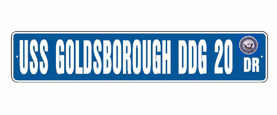 USS GOLDSBOROUGH DDG 20 Aluminum Street Sign Blue / White 6" x 30" Military USN SS001