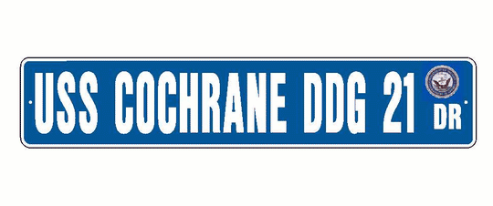USS COCHRANE DDG 21 Aluminum Street Sign Blue / White 6" x 30" Military USN SS001