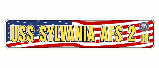 USS SYLVANIA AFS 2 Aluminum Street Sign Red White Blue U.S. Flag 6" x 30" Military USN SS003