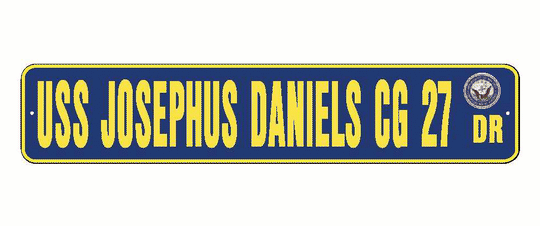USS JOSEPHUS DANIELS CG 27 Aluminum Street Sign Navy Blue / Yellow 6" x 30" Military USN SS002