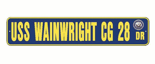 USS WAINWRIGHT CG 28 Aluminum Street Sign Navy Blue / Yellow 6" x 30" Military USN SS002
