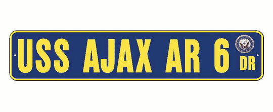 USS AJAX AR 6 Aluminum Street Sign Navy Blue / Yellow 6" x 30" Military USN SS002
