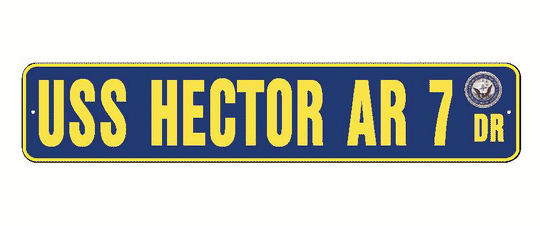 USS HECTOR AR 7 Aluminum Street Sign Navy Blue / Yellow 6" x 30" Military USN SS002