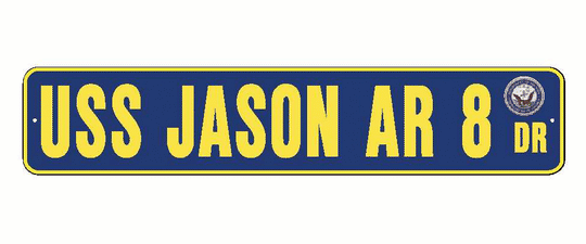 USS JASON AR 8 Aluminum Street Sign Navy Blue / Yellow 6" x 30" Military USN SS002