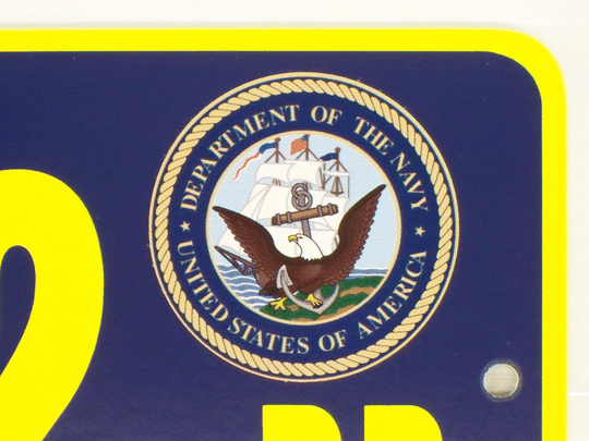 Size: 6" X 30" 2 pre-drilled holes for hanging. Material: .080 Aluminum Color: Navy Blue / Yellow with Navy SealSale price $27.99Regular price $29.99