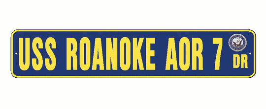 USS ROANOKE AOR 7 Aluminum Street Sign Navy Blue / Yellow 6" x 30" Military USN SS002