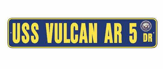 USS VULCAN AR 5 Aluminum Street Sign Navy Blue / Yellow 6" x 30" Military USN SS002