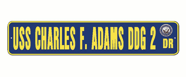 USS CHARLES F ADAMS DDG 2 Aluminum Street Sign Navy Blue / Yellow 6" x 30" Military USN SS002