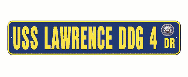 USS LAWRENCE DDG 4 Aluminum Street Sign Navy Blue / Yellow 6" x 30" Military USN SS002