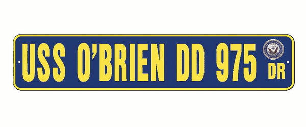 USS O'BRIEN DD 975 Aluminum Street Sign Navy Blue / Yellow 6" x 30" Military USN SS002
