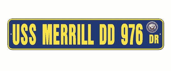 USS MERRILL DD 976 Aluminum Street Sign Navy Blue / Yellow 6" x 30" Military USN SS002