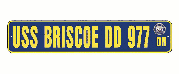 USS BRISCOE DD 977 Aluminum Street Sign Navy Blue / Yellow 6" x 30" Military USN SS002
