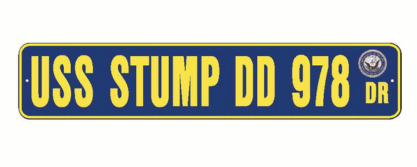 USS STUMP DD 978 Aluminum Street Sign Navy Blue / Yellow 6" x 30" Military USN SS002