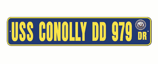 USS CONOLLY DD 979 Aluminum Street Sign Navy Blue / Yellow 6" x 30" Military USN SS002