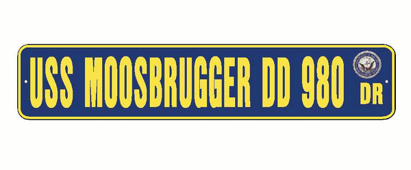 USS MOOSBRUGGER DD 980 Aluminum Street Sign Navy Blue / Yellow 6" x 30" Military USN SS002
