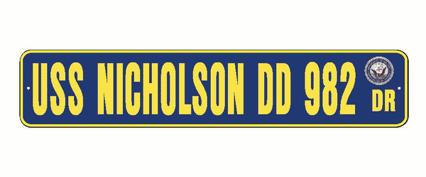 USS NICHOLSON DD 982 Aluminum Street Sign Navy Blue / Yellow 6" x 30" Military USN SS002