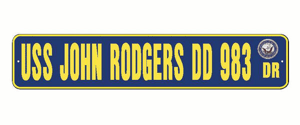 USS JOHN RODGERS DD 983 Aluminum Street Sign Navy Blue / Yellow 6" x 30" Military USN SS002