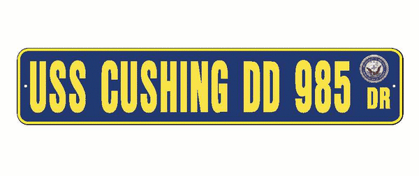 USS CUSHING DD 985 Aluminum Street Sign Navy Blue / Yellow 6" x 30" Military USN SS002