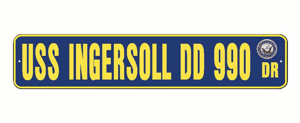 USS INGERSOLL DD 990 Aluminum Street Sign Navy Blue / Yellow 6" x 30" Military USN SS002