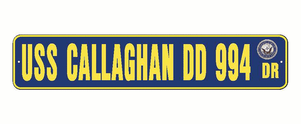 USS CALLAGHAN DD 994 Aluminum Street Sign Navy Blue / Yellow 6" x 30" Military USN SS002