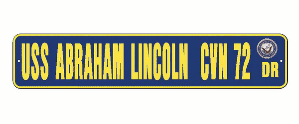 USS ABRAHAM LINCOLN CVN 72 Aluminum Street Sign Navy Blue / Yellow 6" x 30" Military USN SS002