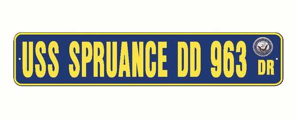 USS SPRUANCE DD 963 Aluminum Street Sign Navy Blue / Yellow 6" x 30" Military USN SS002